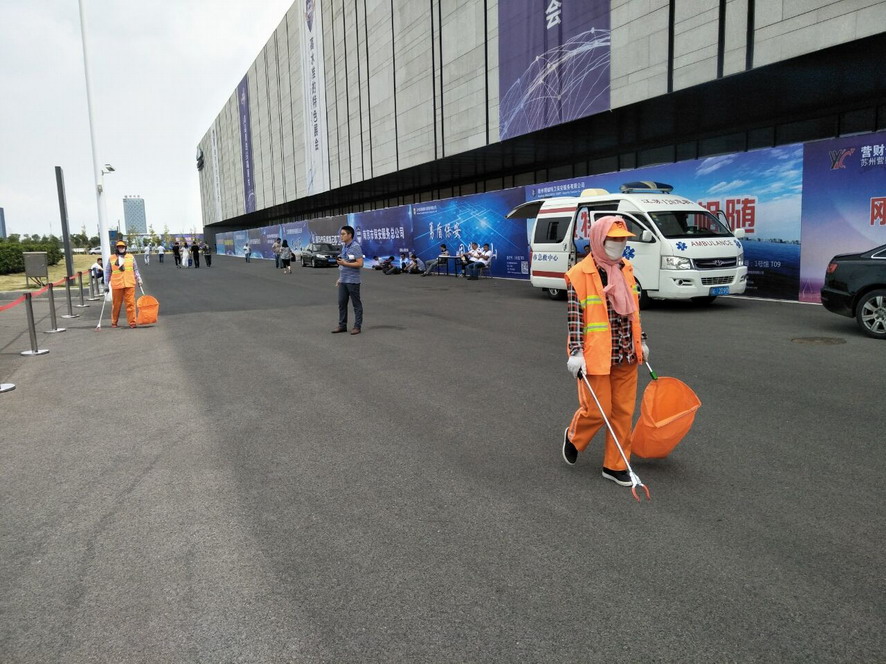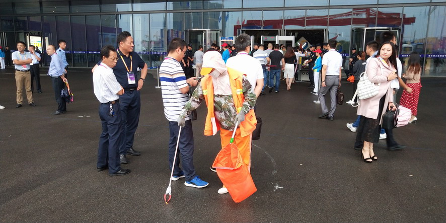 9月14日,連續(xù)忙碌了兩個禮拜的職工們還沒來得及休息,便又投入到“連博會”的準(zhǔn)備工作中去。由于本屆“連博會”共有來自27個國家和地區(qū)的420家企業(yè)參展,展覽總面積達(dá)3.7萬平方米,各家展商在布置展臺時,各類生活垃圾、裝修垃圾等一度將該公司布設(shè)的100多個垃圾桶都塞滿了,在安排好人工清理的同時,該公司還安排垃圾清運(yùn)車對積存垃圾進(jìn)行清理清運(yùn),組織灑水車對會場及周邊道路進(jìn)行沖洗,一直到9月18日晚上9點(diǎn)左右才完成準(zhǔn)備工作。19日“連博會”開幕當(dāng)天,負(fù)責(zé)現(xiàn)場保潔工作的職工們早上6點(diǎn)多就趕到了會場,冒雨在會場周邊開始忙碌,一臺大型清掃車和一臺灑水車也在會場旁隨時待命。到了中午,當(dāng)展商們在室內(nèi)小憩的時候,室外的職工們?yōu)榱瞬坏⒄`事,站在風(fēng)口匆匆地扒拉兩口混雜著雨水的盒飯,就又投入到緊張的清理工作中去。僅19號開幕當(dāng)天,累計(jì)清理各類垃圾7噸左右,為“連博會”的正常召開提供了一個干凈、整潔的會場環(huán)境。