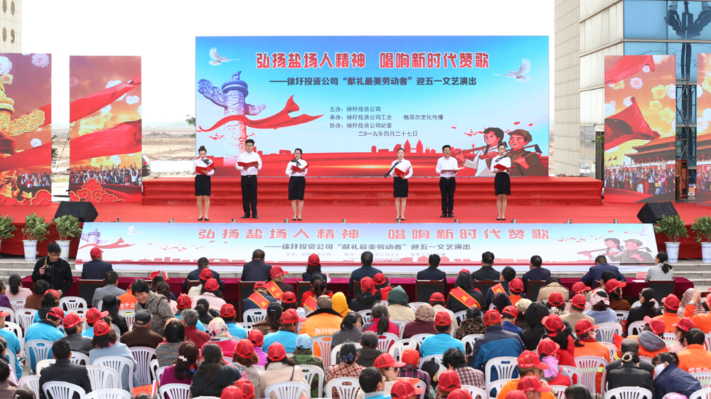 徐圩投資公司舉辦“獻(xiàn)禮最美勞動(dòng)者”文藝演出,并舉行首屆“星級(jí)員工”和“最美職工家庭”獲得者頒獎(jiǎng)儀式。