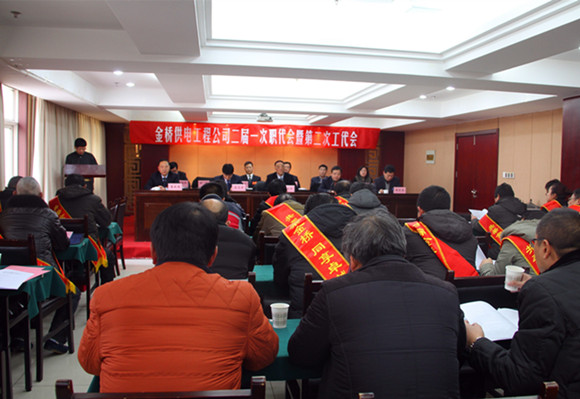 2月5日—6日,公司二屆一次職代會暨第二次工代會在淮鹽大酒店第一會議室隆重召開,來自全公司各條戰(zhàn)線的職工代表齊聚一堂,共商金橋發(fā)展大計。集團(tuán)公司工會主席戴鴻鳴出席會議,并作重要講話,大會聽取并審議經(jīng)理工作報告和工會工作報告。選舉產(chǎn)生第二屆工會委員會、經(jīng)費審查委員會、女職工委員會、第二屆職代會三個專門委員會,審議并通過了有關(guān)方案,簽訂《2015年度集體合同》,遞交《2015年度經(jīng)營認(rèn)標(biāo)責(zé)任書》,并對2014年度先進(jìn)單位、特別獎、示范班組、先進(jìn)科室、優(yōu)秀員工進(jìn)行了表彰。