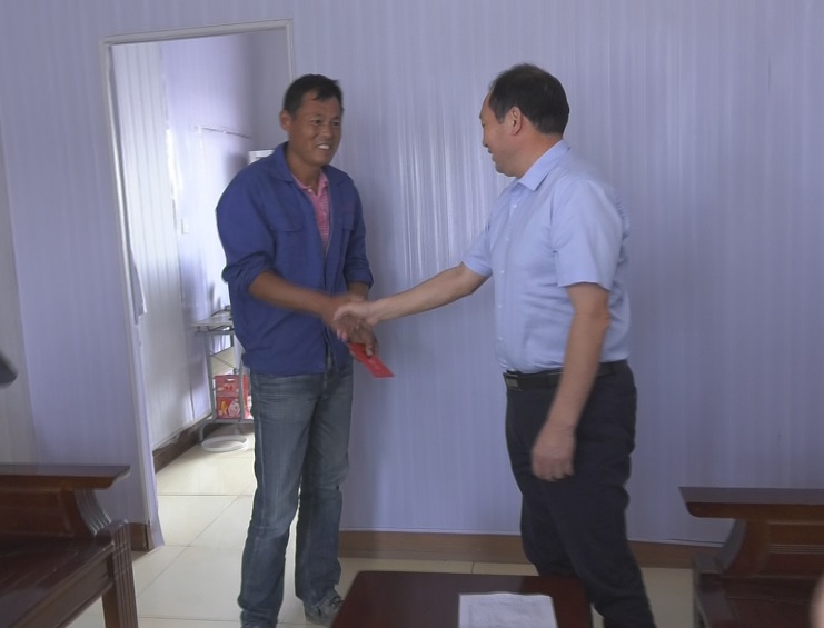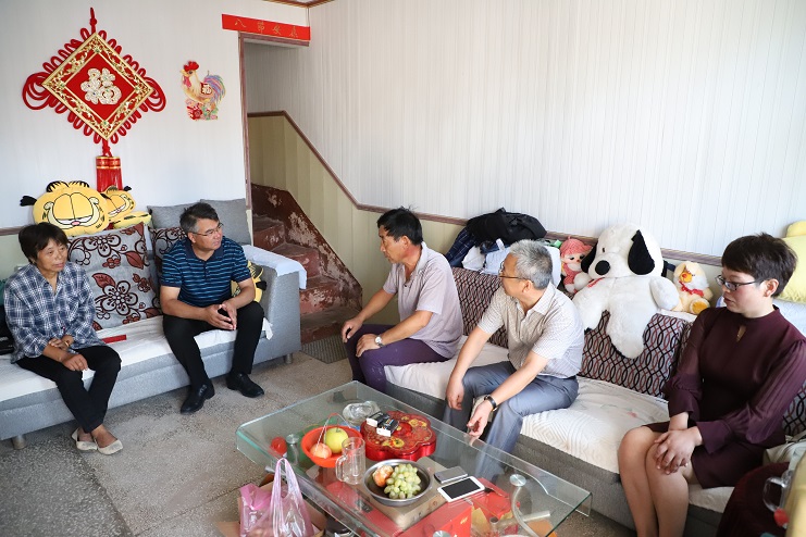 “現(xiàn)在身體還好嗎?兒子現(xiàn)在怎么樣?”在困難群眾于蘭英家里,王德志董事長一進門就關(guān)切的詢問她的生活狀況。“感謝公司黨委的關(guān)心和照顧,目前家里一切都好。”看到王德志董事長的到來,于蘭英有些激動的說道。