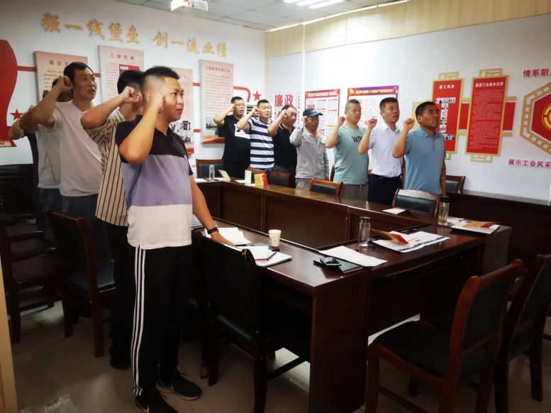 會上,全體黨員同志重溫了入黨誓詞,警醒大家不忘初心、牢記使命宵洋公司經理靳國祥同志以《爭做新時代廉潔從政的表率》為題,從三個方面就充分認清形勢保持清醒頭腦堅決守住底線做到廉潔從政、敢于擔當深入推動工作落實進行了詳細闡述,上了一堂生動的黨課。此外為檢驗黨史學習教育成果,會上組織了黨史知識競賽答題,全體黨員積極參與,營造了濃厚的學習氛。