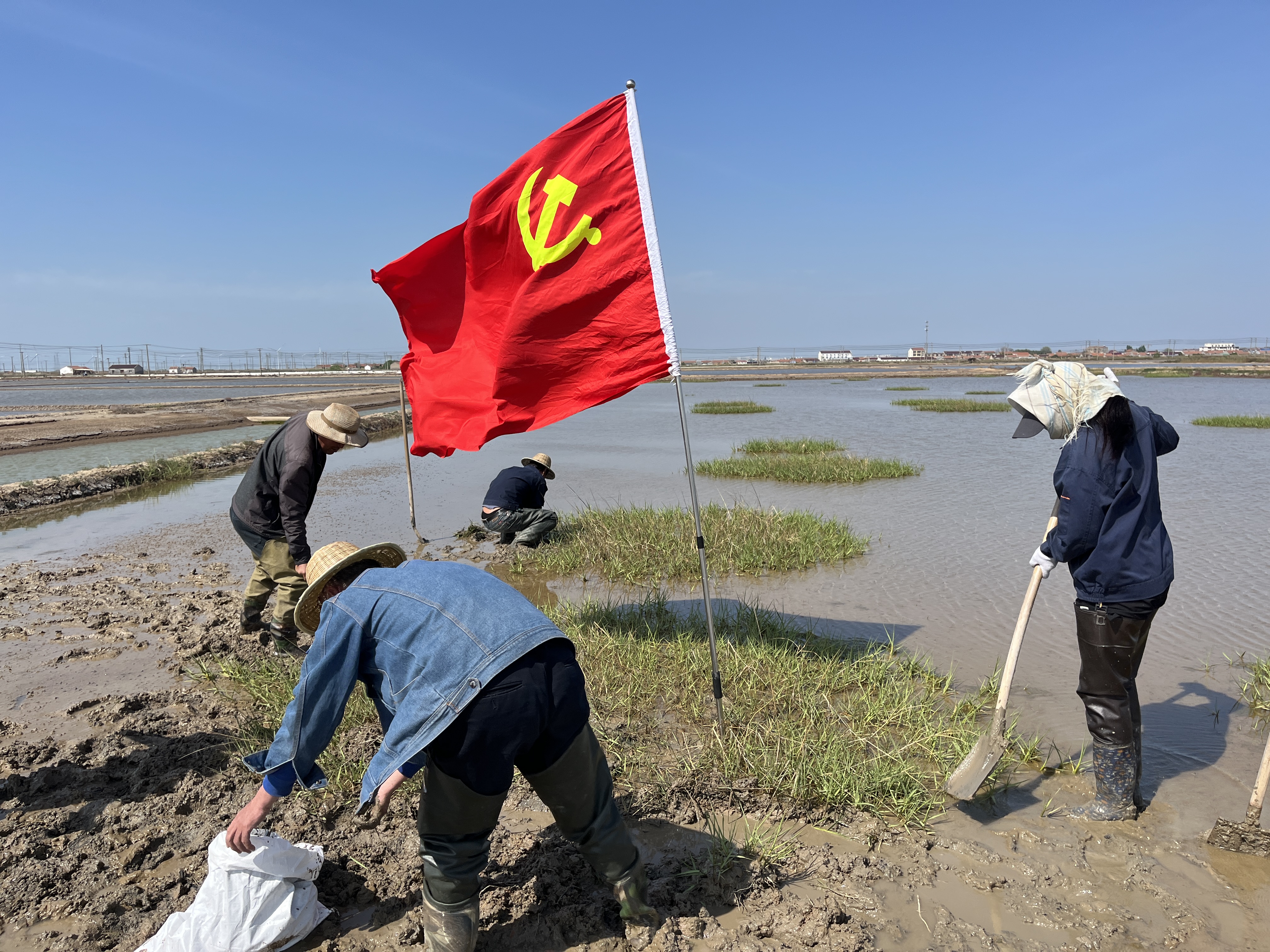 隨著氣溫的升高和蒸發量的逐步增加,2 班“甜頭”大米草即將進入生長旺盛期。這些大米草嚴重制約了正常制鹵工作,給生產帶來了不小的挑戰。為了防范未然,黨支部帶領職工們積極行動起來,他們齊心協力努力理順走水路線,不斷完善灘地條件。大家充分發揮團結協作的精神,為保障生產的順利進行貢獻著自己的力量。