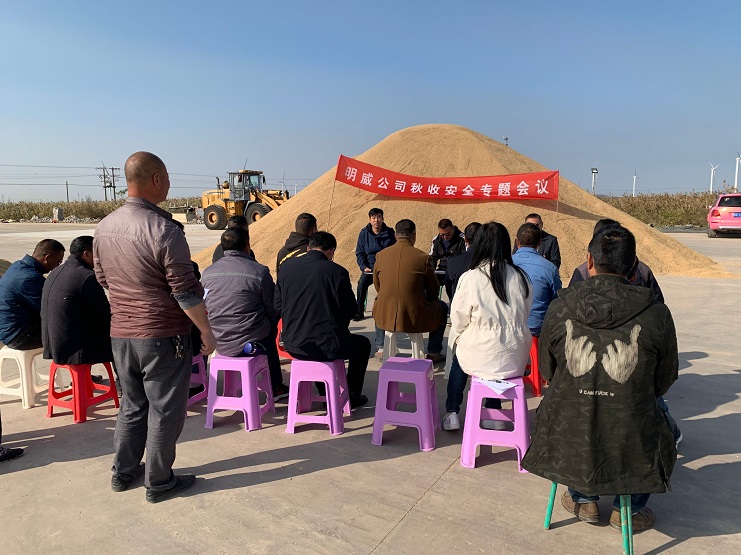 11月8日,明威公司在二灣分公司稻谷曬場,召開秋收安全生產工作專題會議。分析當前安全生產工作形勢,部署秋收期間安全生產工作。