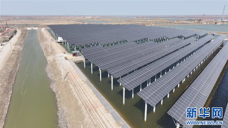 近日,在連云港經濟技術開發區猴嘴街道三峽青口鹽場,近78萬塊光伏板如波浪般起伏,深藍色板面倒映著魚塘的波光,蔚為壯觀。 據悉,三峽青口鹽場漁光互補“光伏復合”項目是江蘇省最大的單體陸基漁光互補項目。該項目以“漁光一體”模式實現綜合開發,通過“板上發電、板下養魚”的協同布局,將光伏電站與水產養殖深度融合,構建綠色生態循環體系。目前,項目現場正在進行光伏板及組件安裝工作,預計今年5月31日前全容量并網發電。