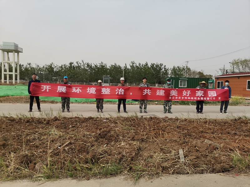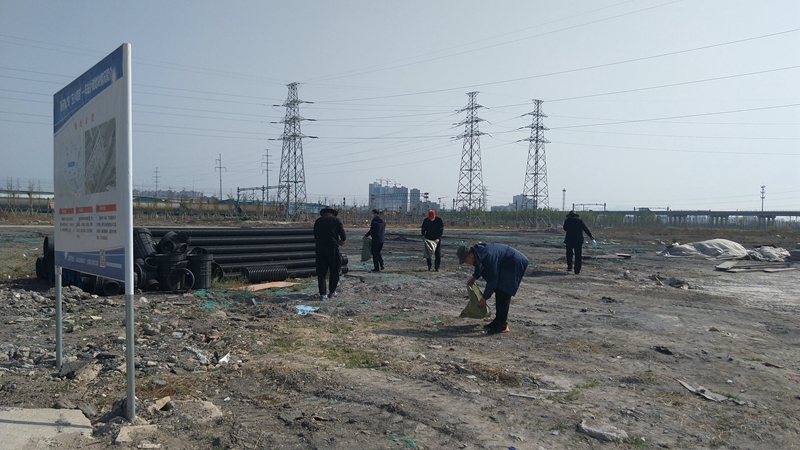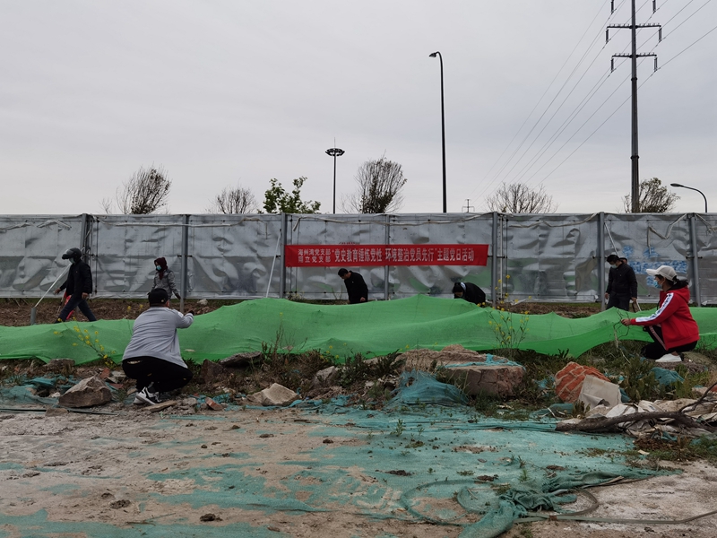 翔立分公司黨支部攜手海州灣公司黨支部對公司的車站小灘進行環境整治,為裸露在外的土地進行防塵網鋪設。